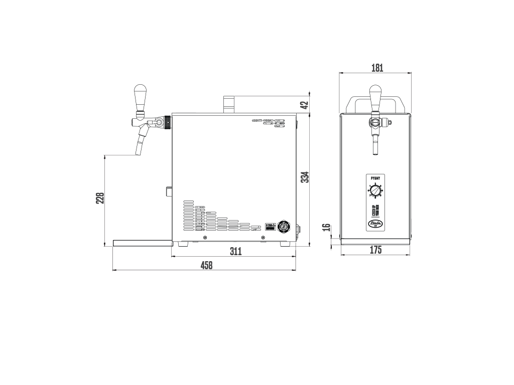 Výčapné zariadenie PYGMY 25 NEW GREEN LINE tvorí špičku medzi malými stolnými chladičmi. Má všetko, čo ho predurčuje na to, byť hviezdou každej oslavy, záhradnej párty alebo jednoducho len posedenie s priateľmi – kompaktná veľkosť a adekvátny výkon. Vďaka tomu všetkému si aj v domácom prostredí vychutnáte profesionálne vychladené, natočené a servírované pivo alebo akýkoľvek iný nápoj. Označenie NEW v názve znamená, že sa jedná o inovovanú verziu chladiča, ktorá je certifikovaná podľa najnovších bezpečnostných a hygienických noriem (slovenských aj európskych).